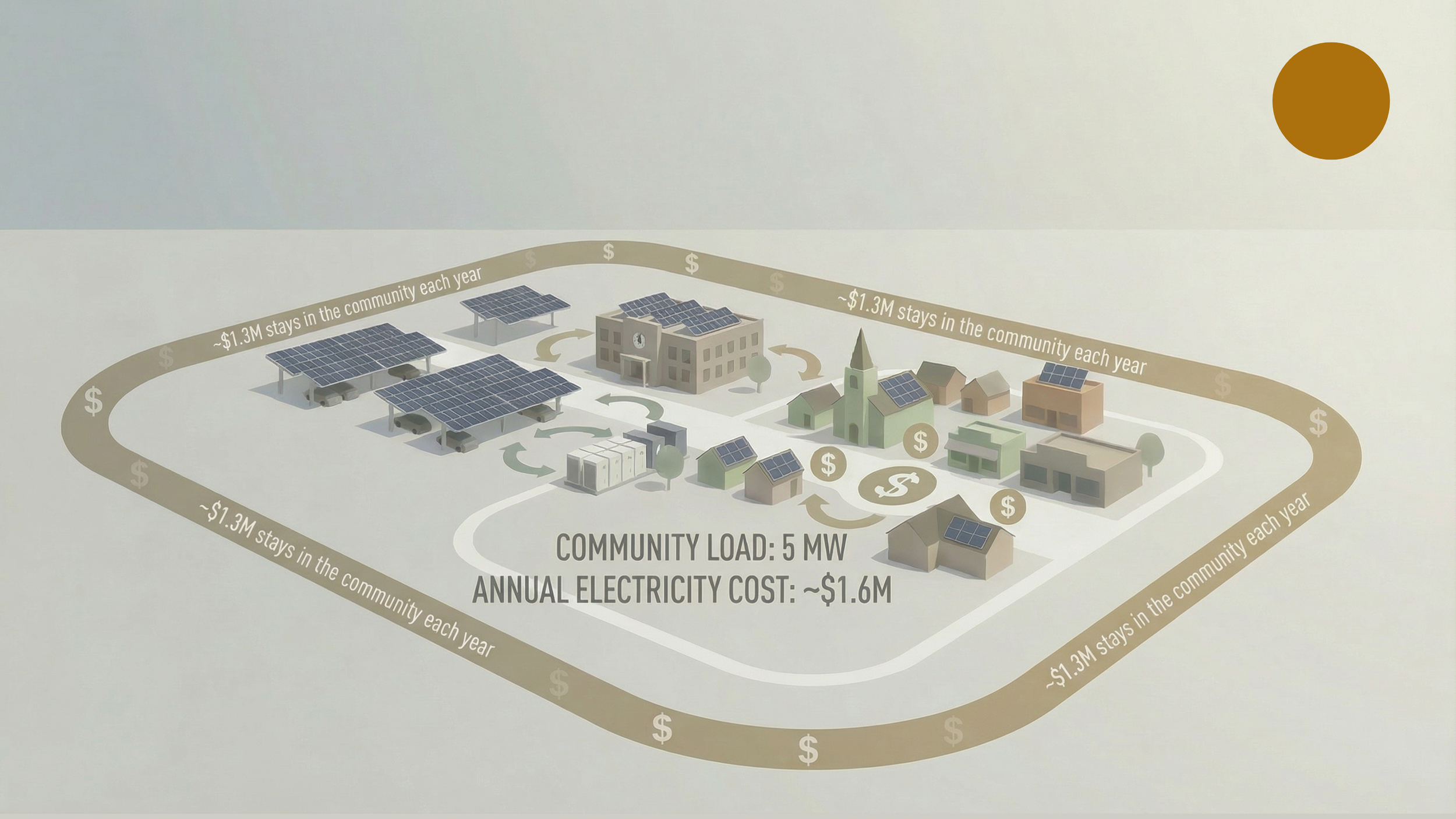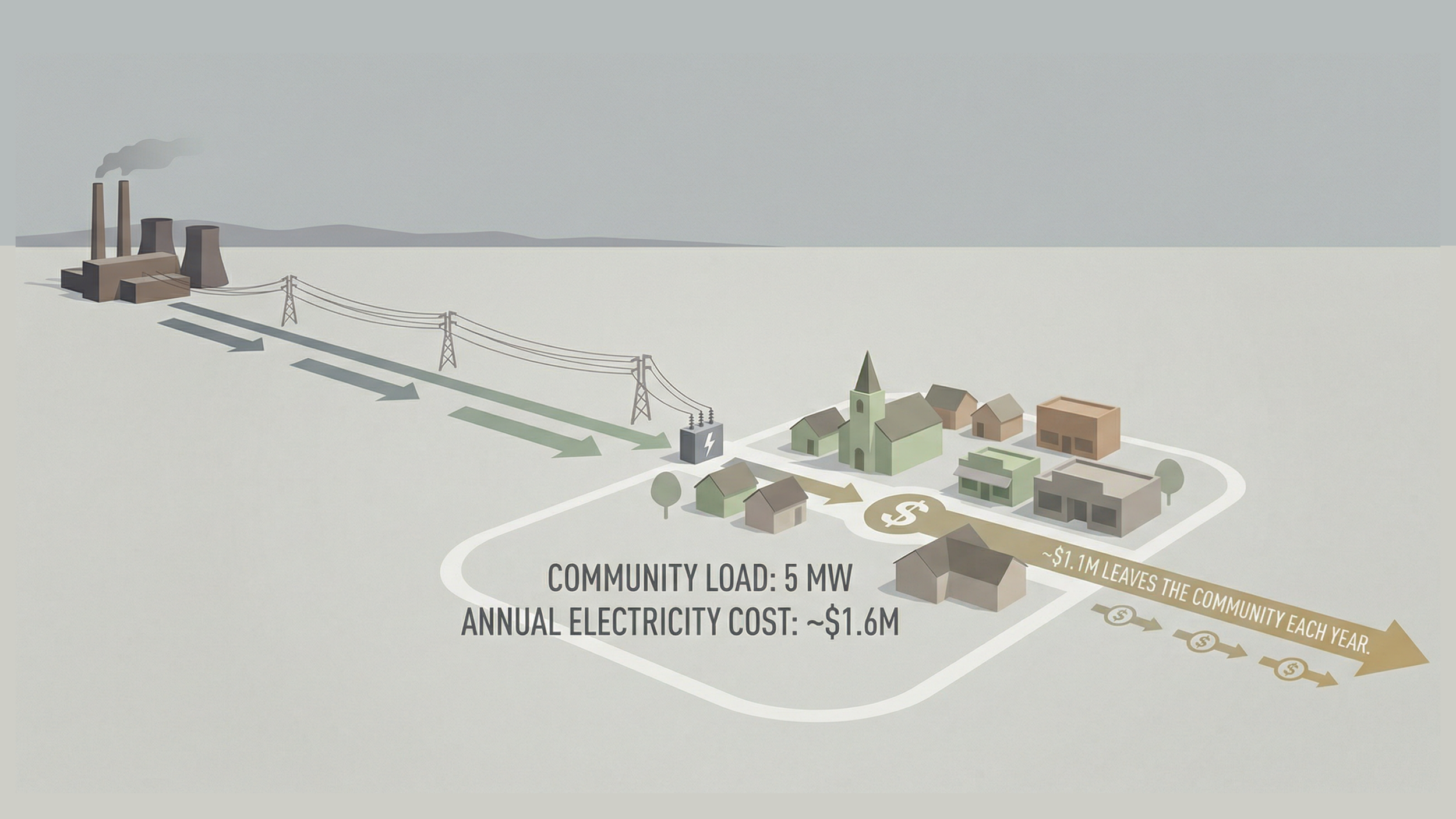 The same kilowatt-hour. The same monthly bill. But when the community owns the infrastructure, every dollar works differently.